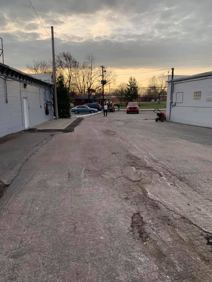 The plaza included customer and employee parking, rear access lanes for deliveries, and highly visible frontage facing the street. Years of heavy use—especially from large vehicles at the auto shops—had taken their toll. Cracks ran deep, potholes were forming, and uneven surfaces created real hazards.